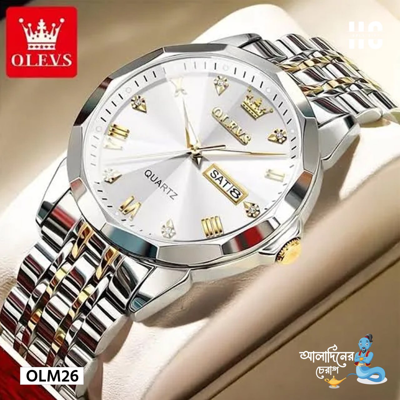 / Watches for Men Diamond Business Dress Analog Quartz Stainless Steel Date Luxury Casual Fashion Wrist Watch Waterproof Luminous OLM-26